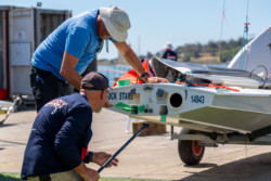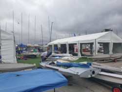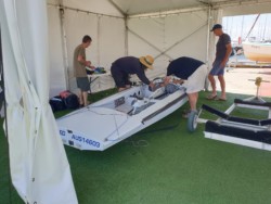 Leider ist jetzt klar, dass die Kontainer der GBR und der CZE auf die WM nicht ankommen werden. So müssen diese Teams weiter mit den geborgten Booten segeln.