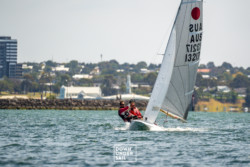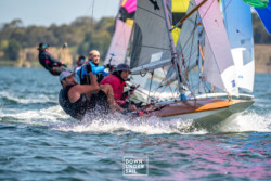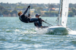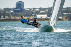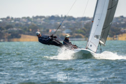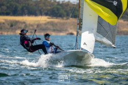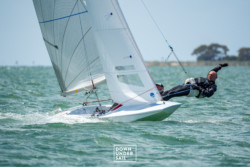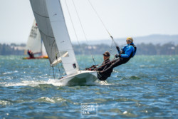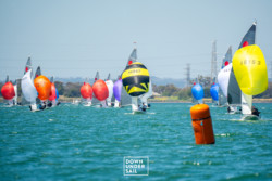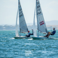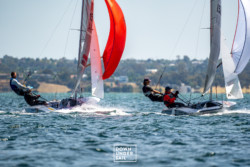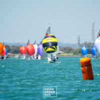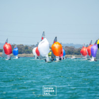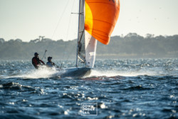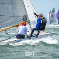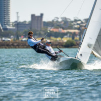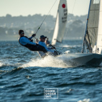 Fr 9.2. Die 2 letzten Läufe der AUS Nationals sind gefahren. Wieder bei Seebrise 2-5Bft. und 40° Dreher. Sieger der Serie sind Dave Hall/Paul Constabel (GBR), 2. Ben Schulz/Angus Higgins (AUS), 3. DJ Edwards/Viv Townend (GBR). Resultate | Report