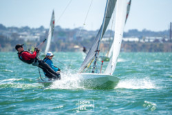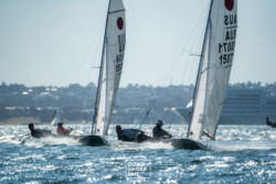 Die gestrigen Überflieger Garner/O’Brien mussten sich mit Rang 16 begnügen, wie auch die Topfavoriten Gillard/Thompson mit 18. Im 2. Lauf, es hatte inzwischen wieder auf 4-5Bft. aufgefrischt, zeigten die beiden Teams aber allen andern wieder das Heck. Gillard/Thompson gewinnen vor Garner/O’Brien und Edwards/Townend. Die SUI verblieben im Mittelfeld, wobei Mermod/Hernandez als 17. besser in Schwung sind als in den vergangenen Tagen. M. Venhoda/Napravnik 32., M. Erne/Poulson 48.