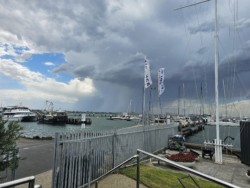 Di 13.2. Es ballert. Nordwind. Der Backofen ist an. Mehr als prognostiziert, mit um die 40 Knoten. Boote festbinden ist angeraten… Keine Rennen heute. Morgen Mittwoch geht es weiter…